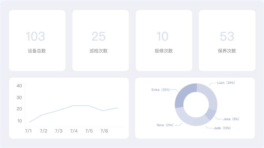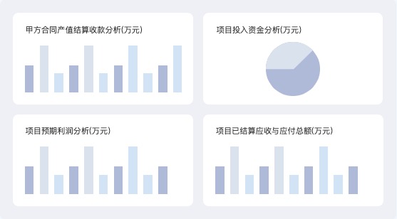 针对多类数据分散的现象,提供了完整的项目看板,将系统各模块数据完美整合在一起,可以非常直观的了解一个项目的全貌,便于进度管控与项目决策